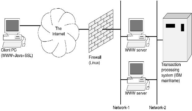 To ensure private communication, we use the SSL protocol, embedded in HTTPS, to protect the communication between the application WWW server and the client machine. We also do not entirely trust the physical connection between the application WWW server and the mainframe, so all communication between our application on the WWW server and our transaction management software on the mainframe is encrypted.