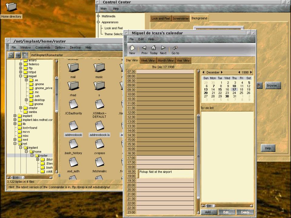 Various important changes to the GTK+ toolkit required for the GNOME project, such as the menu keyboard navigation code and the enhanced “Drag and Drop” protocols (XDND and Motif DND), were written by Owen Taylor, a famous GTK+ hacker now working for Red Hat Labs.