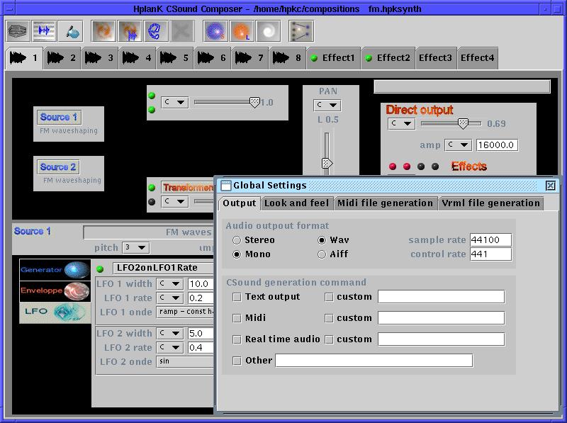 In October 1998, two new members made significant contributions to the group's activities. Gabriel Maldonado donated his entire source tree to the CVS repository, which enables Linux Csound to keep up with the developments for his Windows versions. (This generosity is quite typical of the Csound community. Much code sharing occurs on the Csound mail list, with new instrument designs freely offered, along with much healthy debate over various computer music issues.) The other signal addition has been Fred Floberg, whose contributions require special description.