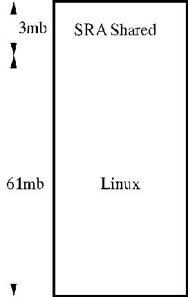 Once the RT-Linux programs/modules capture the data, they must be written to storage and displayed for the system operator. We accomplish this by using shared memory. The SRA has 64MB of RAM and we configured the kernel to boot using mem=61m which causes the kernel to manage only the lower 61MB, leaving 3MB untouched. It is this 3MB that we use for real-time data capture and as a common communication buffer area between RT-Linux modules and normal user-space programs. Figure 10 depicts the SRA memory usage.