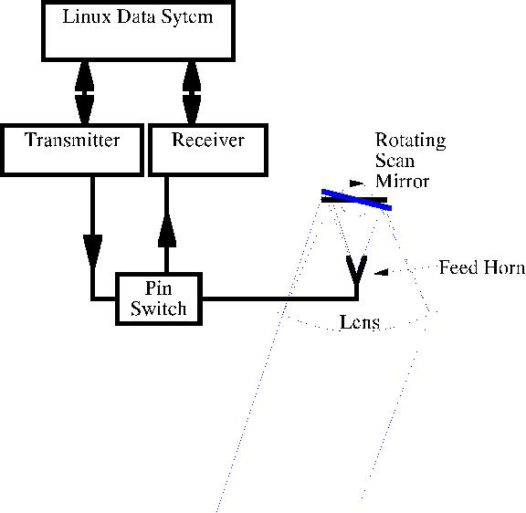 The SRA radar consists of a 20-inch Rexalite lens, a feed horn on the lens axis which looks up into a mechanical scanning mirror that mirror-images the feed horn to the focal point of the lens, a pulse modulator and RF exciter, receiver, 1.7KW Extended Interaction Amplifier (EIK) and the RT-Linux data system. The data system is the topic we will discuss here. Figure 3 is a photograph of the SRA scanner installed on the NOAA hurricane hunter. The fairing is removed in this photo.