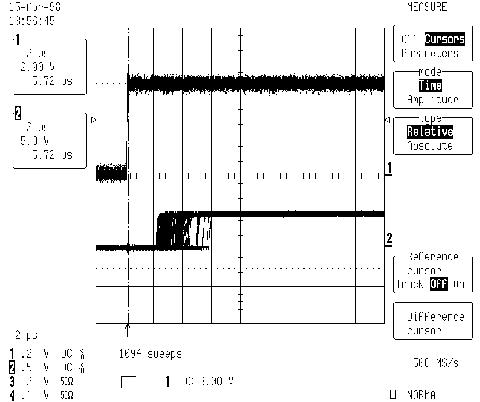 The RT-Linux interrupt typically responds in 2 microseconds (on our 200MHz Pentium) with occasional jitter to several microseconds. When we did this same test with MS Windows a couple of years ago, we found the fastest response to be on the order of 50 microseconds (486-dx2 66MHz) with jitter well into tens of milliseconds. It is incredible just how responsive Linux is to interrupts. Figure 9 is a digital scope capture, where the top trace rising edge is the actual hardware interrupt signal on the ISA backplane. The bottom trace is a hardware signal generated by the interrupt code. It simply wrote a “1”, waited awhile, then wrote a “0” to the printer port. Each horizontal division is 2 microseconds. This demonstrates the typical latency of our RT-Linux system. Concurrent with this test, we ran a find command in another xterm so the system had something to do.