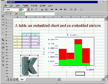 Since all KOffice programs are based on the Open Parts framework, they can all be embedded into each other. You can nicely embed a spreadsheet document into your word processor document and beef the whole thing up with a vector drawing done with KIllustrator. This embedding also features in-place activation with dynamic menu bars, and unlike other embedding technologies on some platforms we like to hate, it is quite stable.