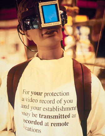 WearComp not only subsumes the function of the laptop computer, but goes beyond it. Another area in which WearComp provides a truly new form of user interface not found on laptops and PDAs (personal digital assistants) is in its constancy of user interface and operation. This characteristic may become most evident in its use as a personal security camera. Imagine, perhaps as you walk down some quiet street at night, an assailant appears, demanding cash from you. You would not likely have the time or opportunity to pull out a camcorder to record the experience, but since the eyeglasses are worn constantly, you would have a video record of the experience to aid investigation.