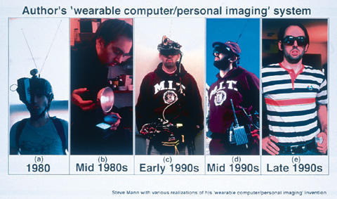 I invented WearComp in Canada in the 1970s as a photographic tool for the visual arts (see Resources 5), in particular, something I called “mediated reality” (altered perception of visual reality). The goal of mediated reality, unlike related concepts such as virtual (or augmented) reality, was to reconfigure (augment, deliberately diminish or otherwise alter) the perception of reality in order to attain a heightened awareness of how ordinary, everyday objects respond to light.