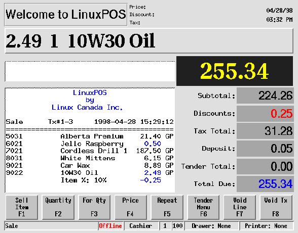 Being a Linux consultant by night and a Windows programmer by day, I am always looking for the best way to solve different problems. Recently, I was given the chance to apply a Linux solution in a new market for us. A longtime Linux client asked me what I'd recommend for a point-of-sale system. Of course, I knew if he was asking me, he probably wanted a reliable solution based on Linux. After a little searching on the Web, I found LinuxPOS from Linux Canada, Inc. Their web site said LinuxPOS was still in beta but a demo copy was available, so I downloaded it. The beta installed easily and in a few minutes I saw the POS login screen. I was impressed immediately.