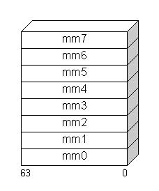 The MMX technology extends the Intel architecture by adding eight 64-bit registers and 57 instructions. The new registers are named MM0 to MM7 (see Figure 1). Depending on which instructions we use, each register may be interpreted as one 64-bit quadword, two packed 32-bit double words, four packed 16-bit words, or eight packed 8-bit bytes (see Figure 2).