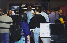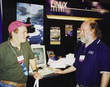 Over 6,000 people turned out to join in the excitement. Described by one attendee as “heady stuff”, I can't think of a better way to describe it. The attendance by the big-name vendors is a sure sign that Linux has made the big leagues. When introducing Dr. Michael Cowpland's keynote speech, Jon “maddog” Hall described this conference as Linux's “coming out” or “sweet 16” party, with the business community embracing the Linux community and Linux embracing business—“Welcome to the world of Linux!” he said.