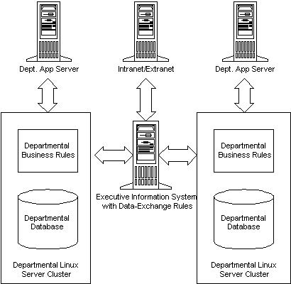 If a company has good operational practices, it does not need to go through the pain of remodeling itself in some other's image. Very often, a company's unique approach to business is part of its competitive edge. This is a strong argument for decentralized computing. If Linux is to use this argument, it will have to provide a powerful system for managing business rules and incorporating them into enterprise systems, as described in Figure 2. Note that once broken down to the departmental level, Linux has the capability and competitiveness to host all of the functions displayed. What is needed is the applications to fill in the blanks. The enterprise-class databases are coming, but the data-exchange management and executive information systems are a tougher proposition. For vendors to prepare such systems for Linux, a solid framework for business rules would probably have to be in place. This may sound easy enough to implement, but in its purest form, it is one of the holy grails of computer science. Research efforts ranging from graph theory to artificial intelligence have sought good ways to enshrine arbitrary business rules (or even just common-sense rules) into a computing framework. A system that could handle enterprise-class computing would need the ability to analyze business objects and apply various operations and constraints on them, as well as check pre-conditions, post-conditions and invariants. This is an area where the great problem-solving ability displayed by distributed developers such as Linux's can make strides.