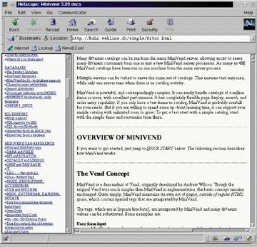 When managing an ISP, you will eventually need a solution for electronic commerce. Many possible solutions are available, but the problem is that they are either big and expensive or small freeware that does not include all the necessary options. I heard about a system called MiniVend, released under the GNU General Public, and decided to try it out.
