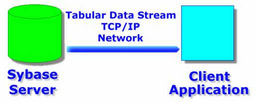 A Sybase client must create a network connection to a database server when it needs to access resources in the database (see Figure 1). Sybase has created a protocol to communicate over the network. This protocol is called the Tabular Data Stream (TDS) protocol. It operates on top of other networking protocols such as TCP/IP on UNIX systems or IPX/SPX on Novell networks. TDS is a proprietary protocol and not documented by Sybase. Fortunately, Sybase has created client libraries which can be used to communicate with the server. A group of people have tried to reverse-engineer the TDS protocol. Look at http://sunsite.unc.edu/freetds/ for more information.
