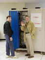 G.P. took us on an extended tour, beginning with the top floor of the main building, looking out over the collider rings. “As far as you can see in every direction is Fermilab”, G.P. said. It was an impressive sight. He then took us to see the collider detectors (see Figure 4)—“It weighs only 100 tons and cost about 100 million dollars.” Finally, we visited the computer room, where the Linux Farms were going to be placed (see Figures 5 and 6). Fermilab calls their systems “Farms” rather than Beowulf systems. They have master machines that delegate the work to many slave processors, connected by high-speed networking and switches. They are not planning on buying the 2000 CPUs until very close to the time they need them. After all, prices keep dropping and capabilities keep increasing, so why not wait until the last moment to get the best “bang for the buck”?