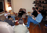Figure 7. Party Time: Linus on left by lamp, G.P. Yeh in far chair, Stefan Traby in far right