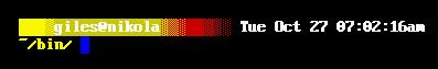 [2203][giles@nikola:~]$ PS1="[\u@\h:\w (\$(lsbytesum) Mb)]\$ "[giles@nikola:~ (0 Mb)]$ cd /bin [giles@nikola:/bin (4.498 Mb)]$