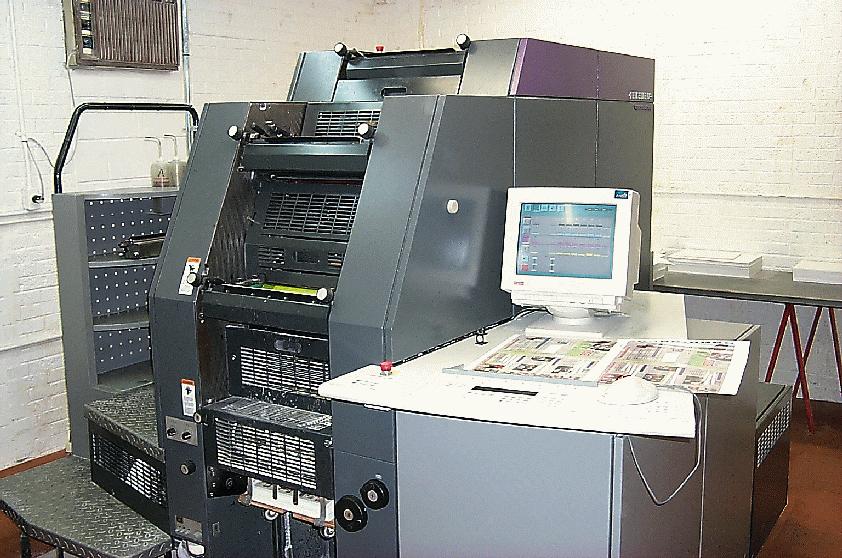 Figure 3. The Heidelberg Quickmaster DI is the most automated printing press in the world. It runs four-color process and mounts, images and cleans its own waterless offset plates while it presets ink keys for the operator.