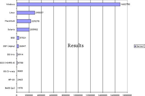 Percentage of those results produced by Linux platforms: 12