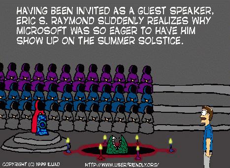 —Eric Raymond to Norm Jacobowitz, June 22, discussing Eric's Microsoft speech (Complete interview can be found at linuxresources.com/articles/linux_review/19990623.html.)
