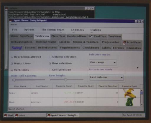 The Java 2 SDK includes the Java Foundation Classes, also known as the “Swing” class library. This library extends Java's original Abstract Window Toolkit, used for building graphical user interfaces. The Swing library provides a rich set of components for GUI development. The jdk1.2/demo/jfc directory contains more than 100 example source files that demonstrate the library's capabilities, including the SwingSetApplet demo, which shows all the components at work in one big applet. The SwingSetApplet includes full source code.
