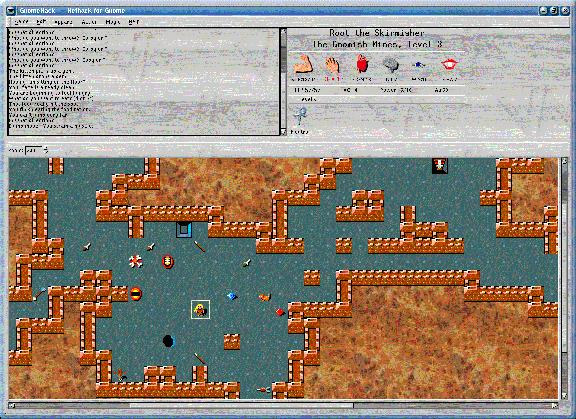 NetHack, the direct descendant of Hack, is the most famous of the Rogue-inspired games. It is extraordinarily complex, offering all sorts of classes, weapons, scrolls, magical rings, potions, creatures, locations and plots. The idea is that once you have outspent yourself (and your parents), you're better off seeking your fortunes underground by retrieving the Amulet of Yendor (well, so says http://www.gnu.org/; the game text has a different interpretation). Hence, you can become a Valkyrie (or a Wizard, Samurai, Rogue, Priest, Knight, Healer, Elf, Caveman, Barbarian, Archeologist or Tourist) and go out questing. There are dozens of levels which become immensely complicated, and the game draws on strategic thinking, cleverness and long-term strategy. NetHack is now available in two graphical versions, one based on Qt (QtNetHack) and one based on gtk (GnomeHack). These graphics are excellent and I recommend taking a look. This is a deep game (smile) which takes some time to get used to, but it's good fun and since it is a classic, it is a good way to expose yourself to hacker culture.