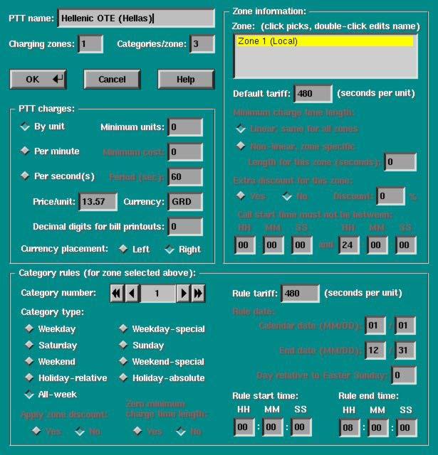 • The phone company database supports all (known) PTT attributes applicable while logging phone-call costs, and saves its information in a separate file in the subdirectory /.xisplogs in the user's home directory.