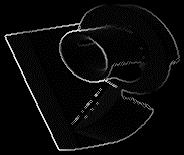 One application that can be efficiently implemented using 3DNow! is an image gradient calculation (edge detection), especially range image gradients. To illustrate how 3DNow! can enable efficient operations on Linux, we'll be looking at how the gradient calculation can be optimized for range and volume data. In an image collected on a 2-D grid, gradient is a measure of the local change of pixel values (e.g., pixel intensity) at a particular point; in a 3-D volume, gradient measures the difference of intensity between a voxel (volumetric element) and its neighbors. There are a variety of methods for determining the gradient. For an image collected on a grid, one way to compute the gradient is as the directional differences in value of the four immediate neighbors (to the north/south and east/west) of each pixel. When this difference is computed for the entire image, the result is that points that lie on the border between regions usually have strong gradient magnitudes. The gradient magnitudes can be viewed as an image—they look like a collection of region boundaries of the original image. The image in Figure 1 is a range image produced from laser-range data. In a range image, each pixel is a floating-point value which expresses the distance from the viewing plane of the corresponding point on the imaged object. We've displayed the image using intensities where brighter values indicate closer points. Figure 2 shows the computed four-direction gradient for the range image of Figure 1.