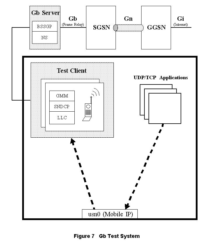 Another large piece of the puzzle was the development of a test server and test services to test the Gb protocol stack. This development began about halfway through the development of the GGSN test server. Naturally, Linux was our primary development environment, and we planned on reusing the USN device and the Linux UDP/TCP/IP stacks all over again. However, this time they would be used to test the Gb stack by simulating calls via virtual mobiles, cells and base stations.