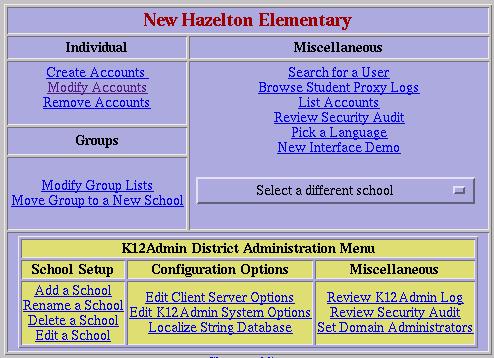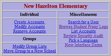 Figure 3. Account Administration Menu As Seen by School Administrator
