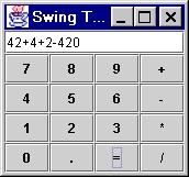 A few things are worth noting about this program, which I adapted from one written by Guido van Rossum. If you're a Java programmer, you may notice that calc.py is a useful program which doesn't define a single class. This is one of the ways in which Python (here JPython) provides a simple scripting solution, whereas Java requires the programmer to know about classes, inheritance, public vs. private members, etc. The second aspect of calc.py, which Java programmers might notice, is that the code is more compact than the equivalent Java code, and yet its purpose remains clear. This is one of Python's most valued strengths, and JPython builds on it in several ways. Python programmers will probably first notice they can read the code and it “feels” like good old Python; and second, the parts of the code they don't immediately understand refer to objects like JPanel, BorderLayout, JTextField, etc. These are defined in Java's Swing GUI. We won't describe Swing in detail here, but see the Swing sidebar for some discussion on what Python programmers should know about Swing.