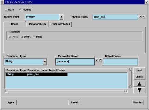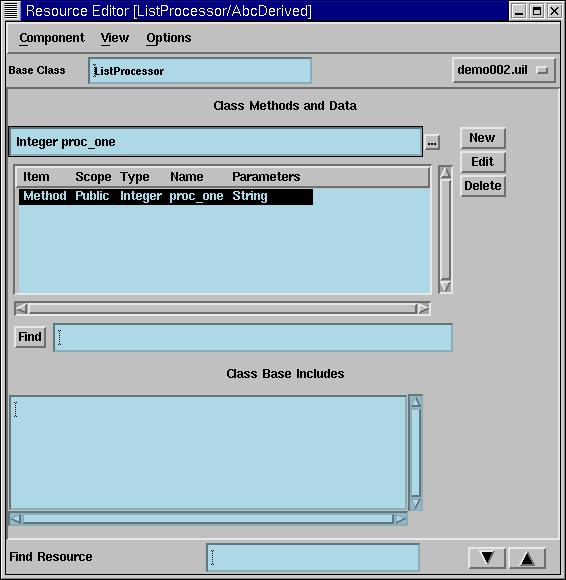 New class methods (functions and procedures) and data can be added easily when we select the class entity in the browser. Our resource editor puts us into class edit mode automatically when we click the “New” button to add data or methods. (See Figures 9 and 10.)