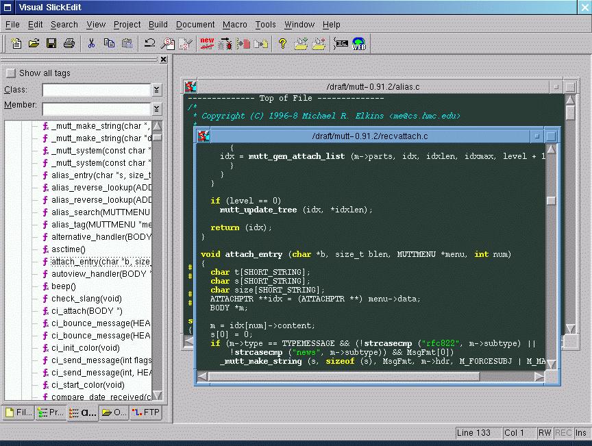 SlickEdit is feature rich. Leaving aside the basic abilities any good programmer's editor should have, this editor abounds with useful functions, including: