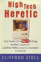 In High Tech Heretic, Stoll argues against the whole notion of ubiquitous computing, against the idea that computers not only can but should cause fundamental changes in the way we do everything. The misguided deployment of computers and Internet connections in schools earn his special ire, as these technologies may displace other important and effective educational practices, and they certainly displace a significant budget that might be better spent on teachers. Stoll writes by telling stories, creating visions of creative, messy, hands-on education being displaced by sterile virtual busywork. Each of his stories is designed to invoke a headshake of empathy—the tale of the small boy whose imperfect, but unique and original paper model is ignored by adults who are agog over a child-created display of clipart. The overall result is compelling.
