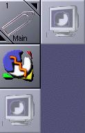 The lack of a visual pager is also a drawback. Although pagers take up screen space (and you'd think I would hate that), their usefulness far outweighs their size. The Clip is helpful, but not as much as the pagers you can get with Enlightenment or FVWM2.