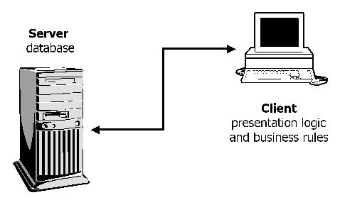 In the 1980s, the arrival of inexpensive network-connected PCs produced the popular two-tier client-server architecture. In this architecture, there is an application running in the client machine which interacts with the server—most commonly, a database management system (see Figure 2). Typically, the client application, also known as a fat client, contained some or all of the presentation logic (user interface), the application navigation, the business rules and the database access. Every time the business rules were modified, the client application had to be changed, tested and redistributed, even when the user interface remained intact. In order to minimize the impact of business logic alteration within client applications, the presentation logic must be separated from the business rules. This separation becomes the fundamental principle in the three-tier architecture.