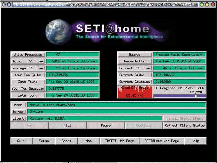 Figure 2. Keeping Tabs on SETI@home with TkSETI