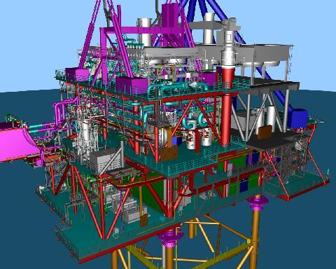 In contrast, for real engineering tasks, the complexity of the CAD models can be staggering—a model of a real offshore platform can, for example, equate to half a gigabyte of polygonal data which must somehow be processed 10-30 times per second if it is to be any use for interactive work in a VE (see Figure 1).