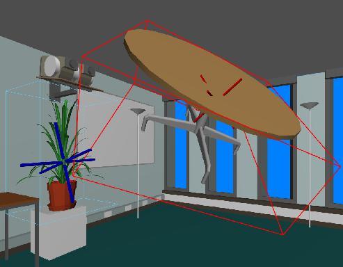 A promising approach is to replace the wire-frame portion with image-based rendering techniques, filling in the background with appropriate still pictures of the rig. These stills are then dynamically distorted so you do not notice that they are stills. That is a subject of current research. For a VE, it is important to make any such transitions between representations smoothly, and avoid objects “popping” between different rendering styles, which is quite disturbing.