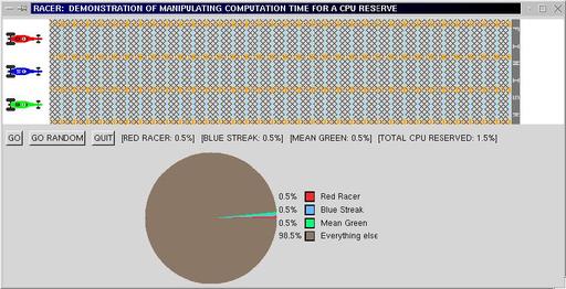 Using the Linux/RK Utilities commands, a Linux/RT resource may be attached to legacy program processes. The legacy process does not have to include any real-time programming constructs. I tried an experiment with my Netscape browser. I attached a resource set to the browser (about 5% of CPU), and then started a large file transfer using FTP and printing a large PDF document. My browser seemed to do okay.