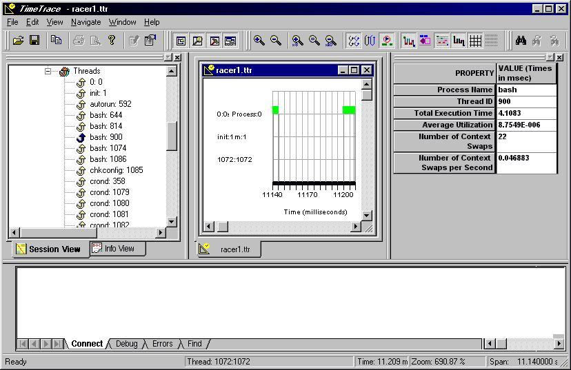 I had some problems getting TimeTrace to display a graph of the racer and rolling sample programs, so I sent a support request e-mail. TimeSys seemed to be going through some growing pains, and it took several days to get a response. Once e-mail contact was made, TimeSys support staff worked with me on resolving the problem.