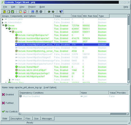 Among Lineo's tools is one called “LIPO,” which goes in and, well, sucks out all the fat. “The shared libraries are big and fat,” Clark says. “If you have several modules sharing libraries, each with a copy of that library, you've got a bigger footprint. We cut fat out of that. We also reduce the size of each library's footprint. We do the same for Apache. By cutting out icon support, for example, you save 22k of memory. We make this possible by taking Apache, cutting it into microcomponents, giving developers the choice of using only the parts they need.” (See Figures 3 and 4.)