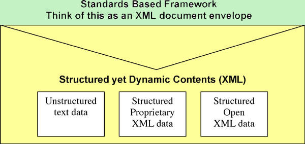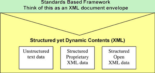 With Jabber, XML messages become an “envelope” or container (see Figure 6). The contents of that envelope are infinitely flexible. XML's data is “structured”, but also potentially dynamic—able to change constantly. It can even define the terms by which it is understood.