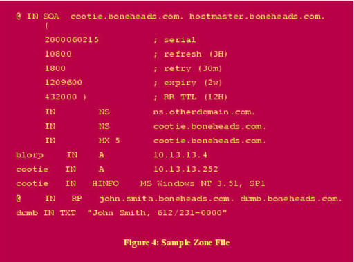 Here's a sample zone file for the hypothetical domain “boneheads.com” (see Figure 4.)