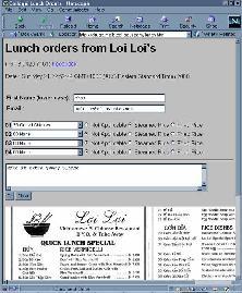 Figure 3. Snapshot of Resulting Web Page After Lunch Order Made