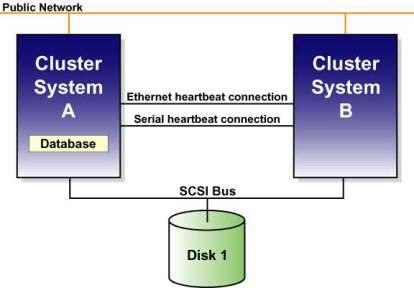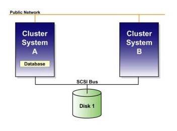 Using examples helps to illustrate the point. The diagram in Figure 1 depicts a two-node cluster (I am using a two-node cluster for simplicity, the concepts apply to clusters composed of more than two nodes as well) with cluster members A and B connected to a shared SCSI bus with Disk 1.