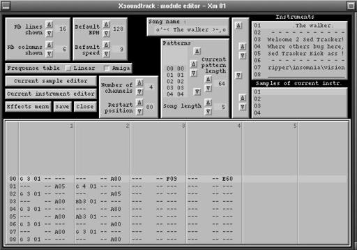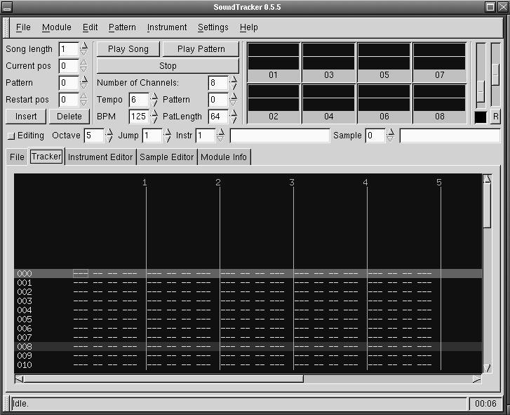 Mod trackers first appeared on Amiga computers. Those machines enjoyed on-board sound support capable of handling up to four channels of 8-bit monaural sampled sound. With the advent of decent affordable PC soundcards, MS-DOS became the next platform of choice for module composers. Today excellent trackers are available for Windows, the Mac and, of course, Linux.
