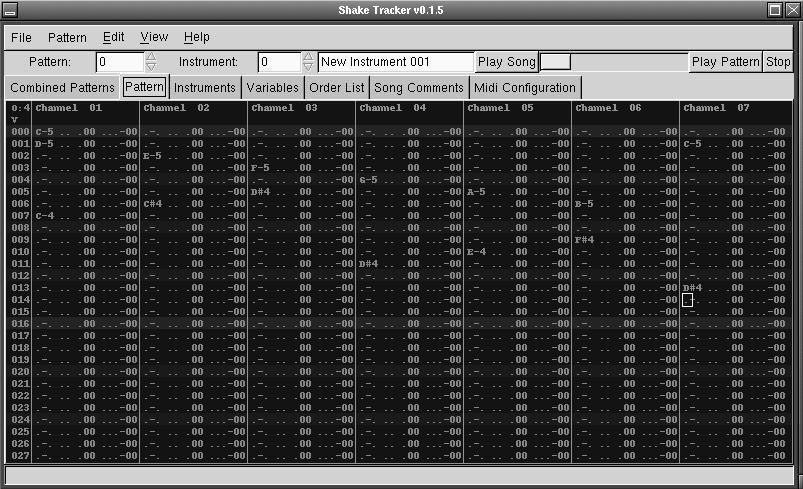 Tracker-style interfaces also appear in music software that does not create modules. Juan Linietsky's unique Shake Tracker (see Figure 4) combines the module tracking interface with MIDI output. If your soundcard includes a hardware synthesizer with SoundFont (sf2) support you can use its sound banks directly. Shake Tracker has just begun its development course, but it is already usable, and the author welcomes feedback and suggestions from users.