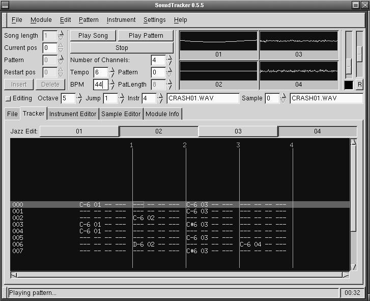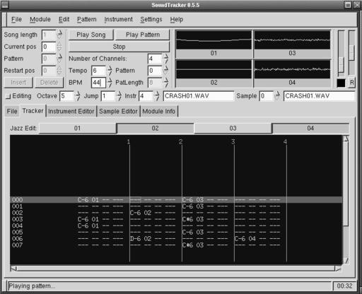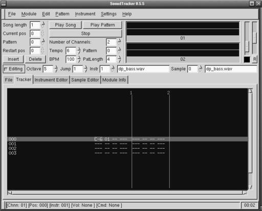 SoundTracker is the most feature-packed of all the trackers I've used with Linux. Its interface presents all the program's tools on a single screen, making it easy to understand and a pleasure to use. As you will see, tracking with SoundTracker is a simple process and great fun.