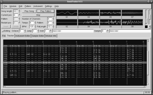 As of version 0.5.5, the documentation for SoundTracker consists of a single README file, but little more is needed. Trackers all follow a similar design, and the reference materials found on the United Trackers and MODPlug Central sites will help you understand the basic use of almost any tracker.