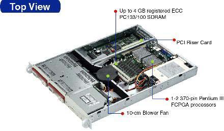 The SuperServer 6010 dual processor and 5010 single processor series of 1U servers are available from Supermicro. Both series utilize dual onboard LAN controllers, provide fault tolerance, fast Ethernet and adaptive load-balancing solutions for broad-bandwidth network environments. The SuperServer 6010H utilizes dual Intel 370 FCPGA Pentium III processors up to 1GHz, ServerWorks ServerSet III HE-SL chip set supporting a maximum of 4GB of two-way interleave PC133/100 SDRAM, 64/32-bit 66/33 MHz PCI bus, Adaptec's Ultra 160 dual channel SCSI and Intel's dual 82559 NIC network interface capability.