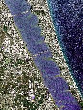 Figure 2. A section of a fused satellite image of Melbourne, Florida. This image was formed with the color from Landsat 5 combined with the 5m spatial resolution of the Indian IRS 1C satellite.