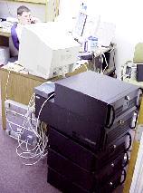 Figure 4. The ImageLinks Beowulf cluster consists of 12 nodes, RAID disk drives, 100BT Ethernet Switch and power conditioning.